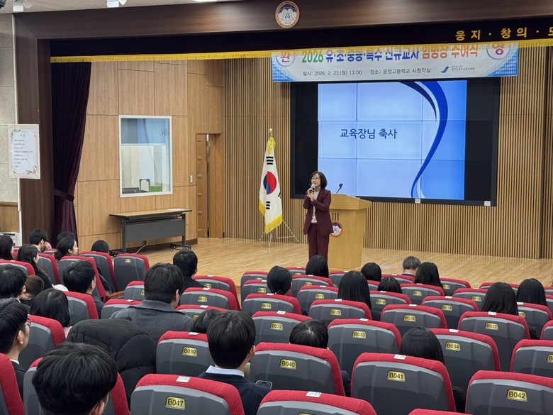 행사는 공무원헌장 및 선서문 낭독을 시작으로 임명장 수여, 교육장 축사, 신규교사 소감 발표 순으로 진행되었다. 신규교사들은 공직자로서의 사명감과 책임을 다할 것을 다짐하며 교육 현장에서의 첫걸음을 공식적으로 내딛었다.