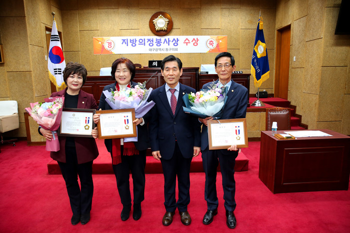 주형숙 의원이 전국 지방의정봉사상을 권상대, 이연미 의원은 대구시 지방의정봉사상을 각각 수상하는 영예를 안았다.