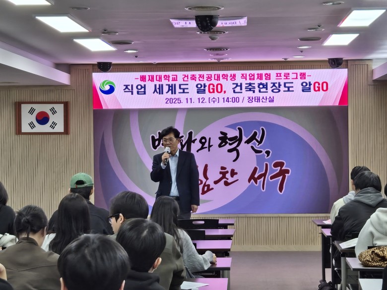 [서구 세계타임즈=이채봉 기자] 대전 서구(구청장 서철모)는 ‘직업 세계도 알GO, 건축현장도 알GO’ 건축 전공 대학생 직업 체험 프로그램을 진행했다고 13일 전했다.