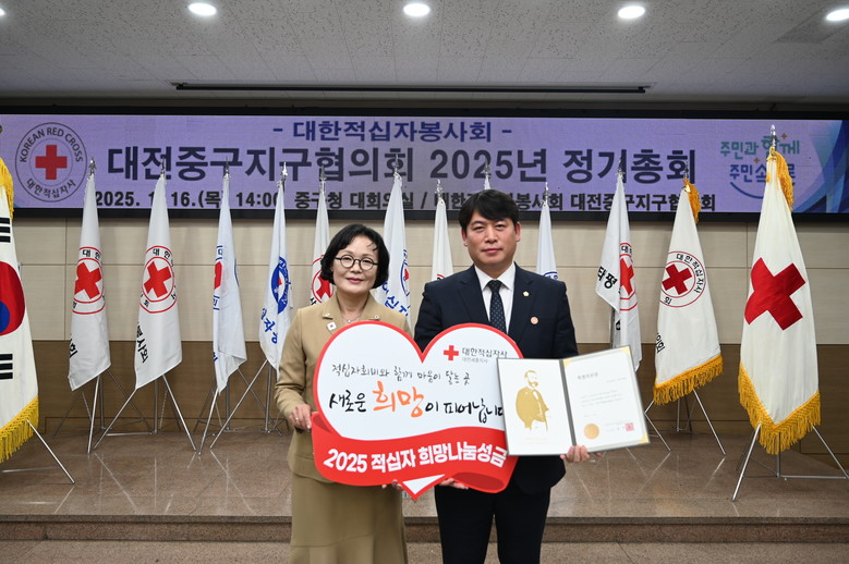 [중구 세계타임즈=이채봉 기자] 대전 중구의회(의장 오은규)는 1월 16일 대한적십자봉사회 중구지구협의회 정기총회에 참석하여 적십자 특별회비 50만 원을 전달했다.