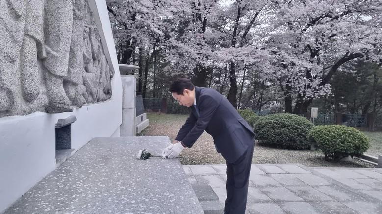 손명수 당선인은 이날 오전 6시 용인현충탑에서 호국영령들을 참배하는 것으로 당선인 신분으로서 새로운 각오를 다졌다.