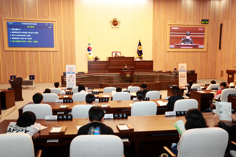 청소년 의회교실은 학생들이 1일 도의원이 되어 본회의장에서 의장 선거, 안건처리, 2분 자유발언 등 의정활동을 체험하는 프로그램이다.