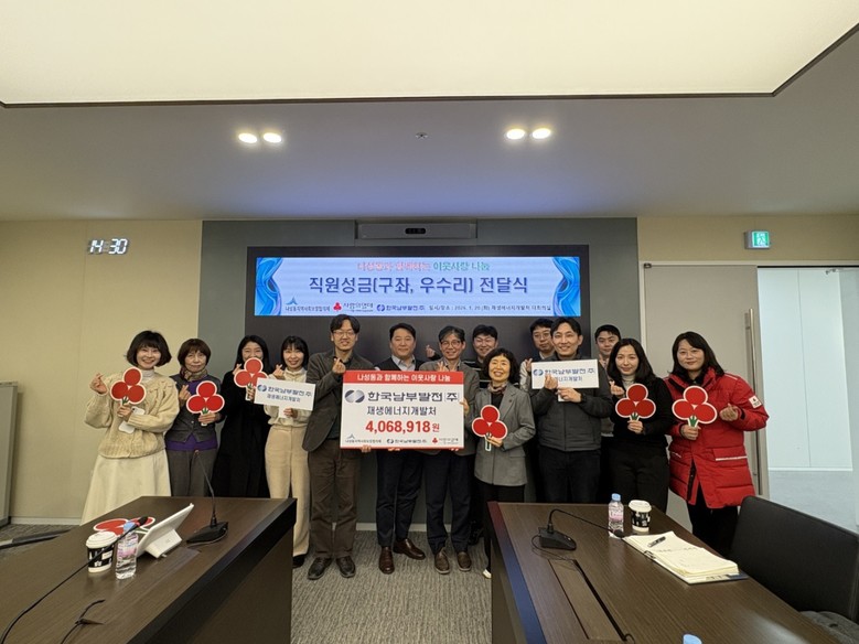 김대종 재생에너지개발처장은 “주위 어려운 이웃에게 희망을 전하고자 성금을 마련했다”며 “앞으로도 지역사회와 함께하는 나눔 활동을 이어가겠다”고 말했다.