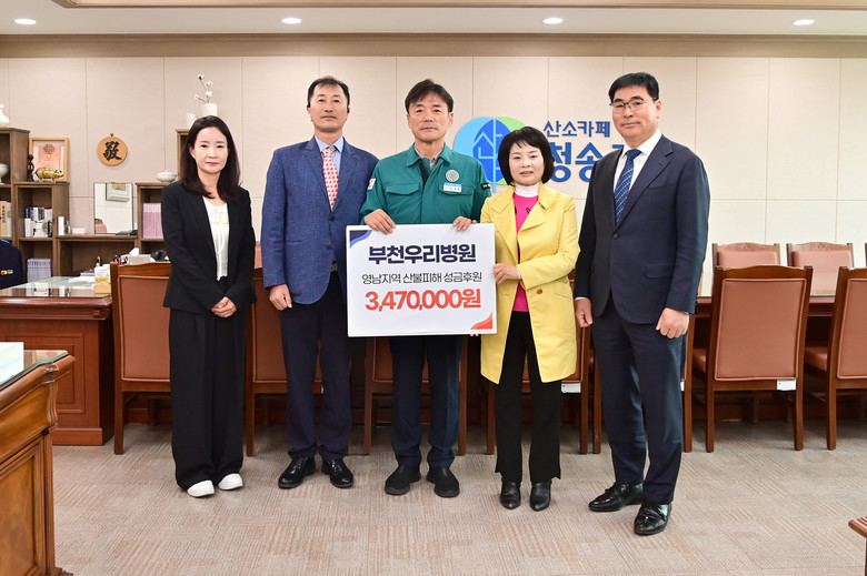 또한 부천시에서도 청송군을 위한 응원의 마음이 이어졌다. ▲영남향우회(총회장 김영화) 700만 원, ▲호남향우회 총연합회(총회장 강옥동) 500만 원, ▲부천우리병원 347만 원, ▲충청향우회(총회장 전상득) 300만 원, ▲재부천강원특별자치도민회(총회장 박연준) 300만 원, ▲건주병원 100만 원 등 도움의 손길을 보내며 지역간의 연대를 보여주었다.