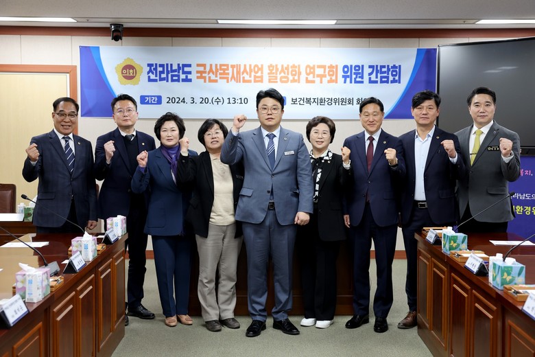 [전남 세계타임즈=우덕현 기자] 전남도의회 ‘전라남도 국산목재산업 활성화 정책연구회’(대표위원 김호진)는 지난 20일 도의회 보건복지환경위원회 회의실에서 간담회를 갖고 본격적인 활동에 들어갔다.