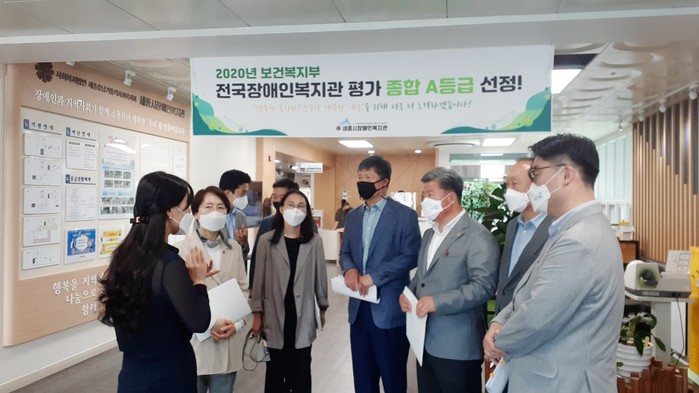 행정복지위 위원들은 조치원에 위치한 세종시장애인복지관에서 장애인 지원과 운영 프로그램, 교육 현황에 대한 설명과 애로사항 등을 청취하고 시설 현황을 점검했다.