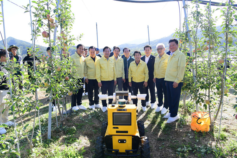 또한, 거창군에 위치한 경상남도 농업기술원 사과이용연구소와 사과미래형 과원 전략거점단지 육성사업 현장을 방문해 과수 농업용 로봇 도입 현황과 이를 이용한 사과생산과정을 참관했다.