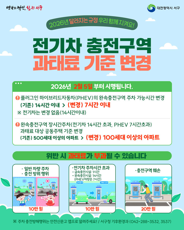 구 관계자는 “전기차와 외부충전식 하이브리드 차량 소유자는 변경된 기준을 확인해 불이익을 받지 않도록 주의해 달라”고 말했다.