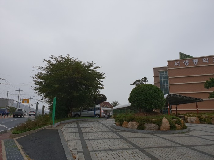 첫째, 학교 정문에서 좌측으로 들어가면 학교장과 선생님들의 주차장이 마련되어 있습니다. 비와 바람, 여름 햇살도 피할 수 있게 훌륭하게 되어 있습니다. 그러나 학생들은 통학 시 학교 앞 버스 정류장에는 표지판만 설치되어 있어 비, 바람, 햇살을 피할 곳이 없는 그대로 노출되어 있습니다. 울산시내에는 시간당 5명도 이용을 하지 않는 곳인데도 버스탑승 대기장소가 마련되어 있습니다.