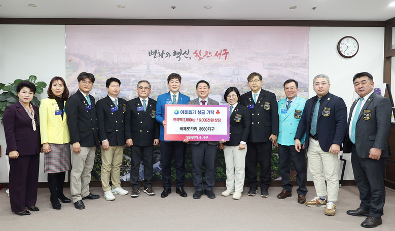 [서구 세계타임즈=이채봉 기자] 대전 서구는 20일 국제로타리 3680지구로부터 떡국떡 2,000kg(600만 원 상당)을 기탁받았다.