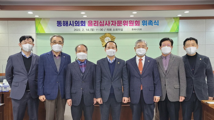 [동해시=세계타임즈 김민석 기자] 동해시의회(의장 김기하)는 14일, 의회 소회의실에서 윤리심사자문위원회 자문위원 위촉식을 개최했다.