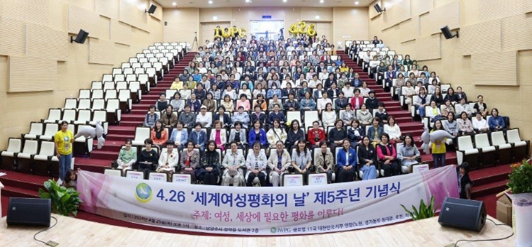 (사)세계여성평화그룹 글로벌 11국(IWPG, 글로벌국장 장선희)이 25일 ‘세계여성평화의 날’ 5주년을 맞아 ‘여성, 세상에 필요한 평화를 이루다!’를 주제로 서울·경기동부 지역 5개 지부 연합으로 기념식을 개최했다.