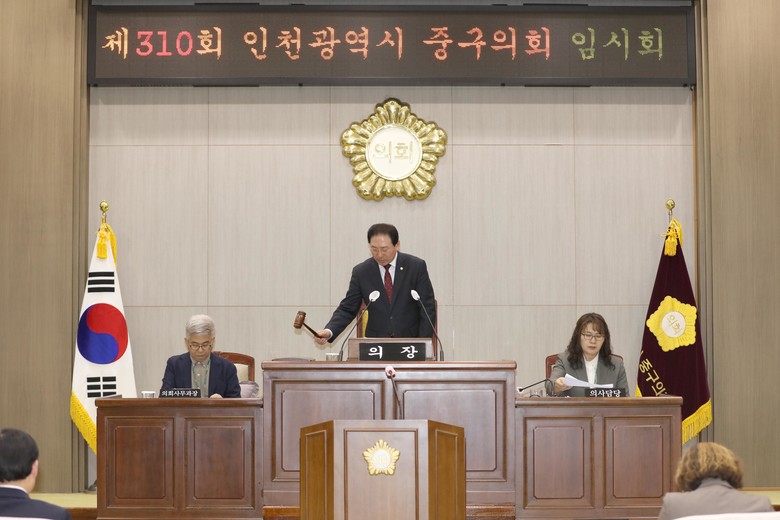 [중구 세계타임즈=심하린 기자] 중구의회(의장 강후공)는 4월 26일부터 5월 3일까지 8일간의 일정으로 제310회 임시회 회기에 돌입했다.
