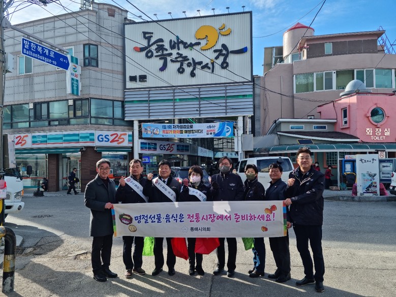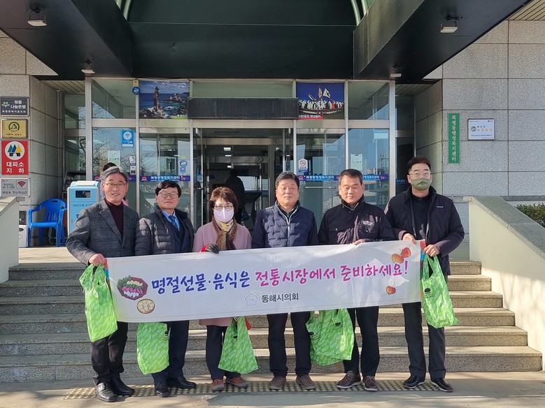 [동해시 세계타임즈=김민석 기자] 동해시의회(의장 이동호)는 1월 18일(수)~19일(목) 북평민속시장과 동쪽바다중앙시장을 방문하여 코로나19로 위축된 전통시장 활성화를 위해 명절맞이 장보기 행사를 진행했다.