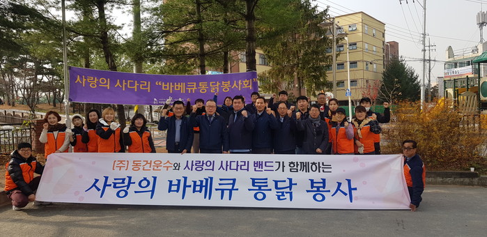 이날 통닭봉사는 ㈜동건운수의 후원으로 신상일 회장, 유희자 이사를 비롯한 사랑의 사다리 밴드 회원 20명과 동건운수의 이선엽 대표, 지상욱 부장과 직원15명이 함께 7곳의 경로당에 통닭과 음료수를 전달하였다.
