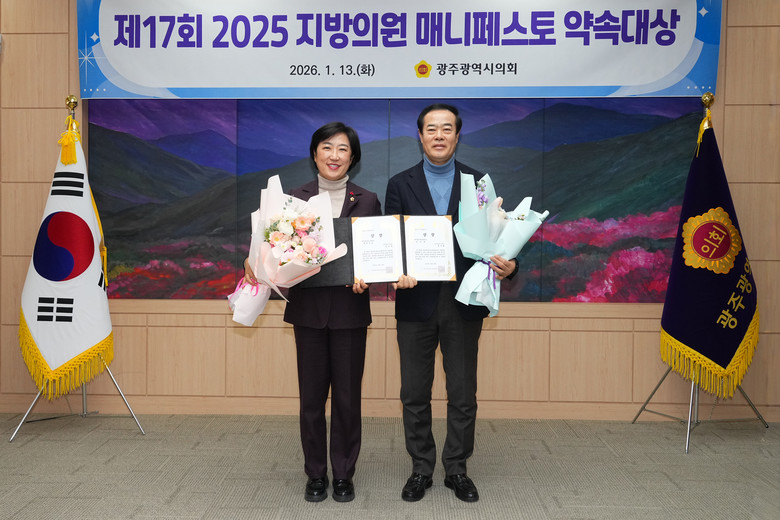 올해로 17회를 맞은 ‘지방의원 매니페스토 약속대상’은 (사)한국매니페스토실천본부가 주최하는 상으로, 지방의회의 역량 강화 및 주민신뢰 기반 구축을 목표로 매년 전국 지방의원을 대상으로 공약이행 및 좋은조례 분야를 심사해 엄정한 절차를 거쳐 수상자를 선정하고 있다.