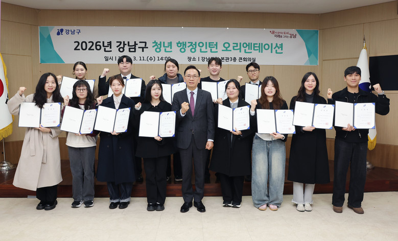 [강남구 세계타임즈=이장성 기자] 꿈이 모이는 도시, 미래를 그리는 강남구(구청장 조성명)가 청년 13명을 행정인턴으로 선발하고, 11일 구청에서 오리엔테이션을 열었다. 청년이 공공 현장에서 실질적인 직무 경험을 쌓고 취업 경쟁력을 높일 수 있도록 올해 처음 도입한 사업이다.