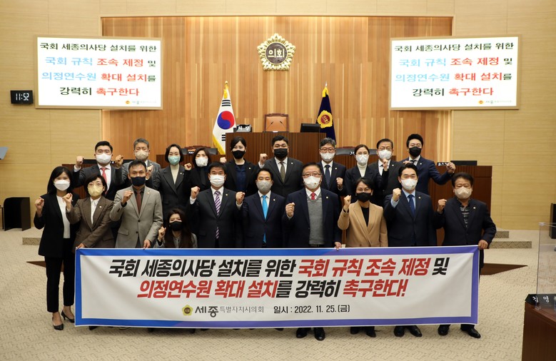 세종시의회 의원 전원은 공동 발의한 건의안을 통해 “국회 이전 범위와 건립 규모를 결정하는 것은 국가백년지대계를 좌우할 역사적 사안으로, 국회 규칙에 담길 이전 범위를 최대한 확대해서 향후 국회 전체 이전까지 감안한 규모로 건립 방향을 결정해야 한다”고 강조했다.