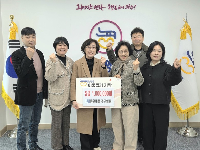 이와 함께 능평동 동현마을 주민들도 설 명절을 앞두고 성금 100만 원을 기탁했다. 동현마을 주민들은 자발적으로 성금을 마련해 지역 내 취약계층 지원에 나섰으며 주민 대표는 앞으로도 이웃과 함께하는 나눔 활동을 지속하겠다고 전했다.