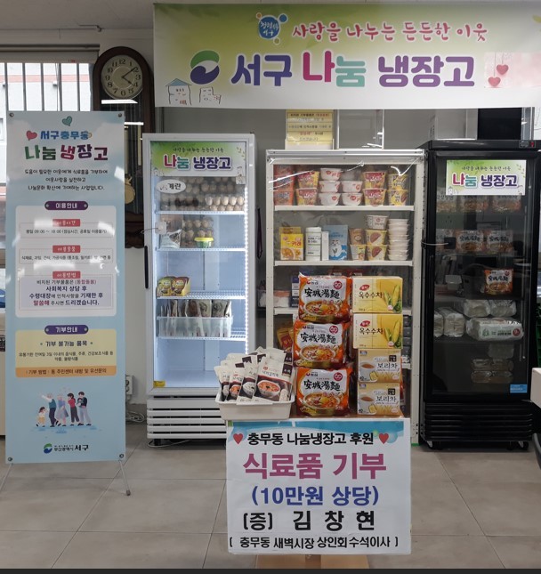 [서구 세계타임즈=이용우 기자] 부산 서구 김창현(충무동 새벽시장 상인회 수석이사) 님은 지난 12일 나눔 냉장고에 죽, 라면 등 식료품(10만 원 상당)을 보내와 올해 들어 2번째 기부를 실천하였다.