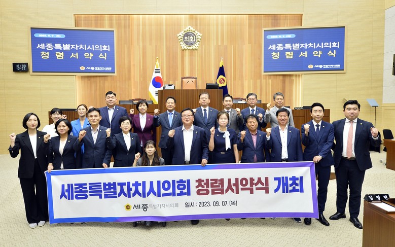 [세종 세계타임즈=이채봉 기자] 세종특별자치시의회(의장 이순열)는 7일 본회의장에서 부정부패 없는 청렴 문화 확산을 위한 ‘청렴 서약식’을 개최했다.