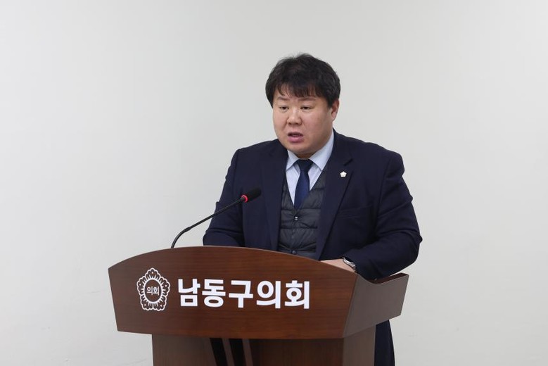 | ▲ 제292회 남동구의회 임시회 제5차 사회도시위원회(24.2.21.) 조례안 제안설명 중인 정재호의원 |