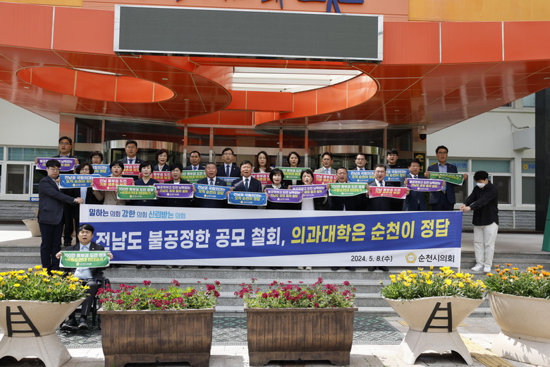 한편 순천시의회는 의과대학 유치를 위해 2022년도에 특별위원회를 구성하여 대국민 공감대 형성을 위한 현장 홍보 등 다양한 활동을 펼쳐 왔으며, 지난 4월에는 ‘전남도 국립 의과대학 순천 유치 촉구 건의안’을 발의하는 등 의료 취약지역 해소를 위해 적극적으로 활동해 오고 있다.