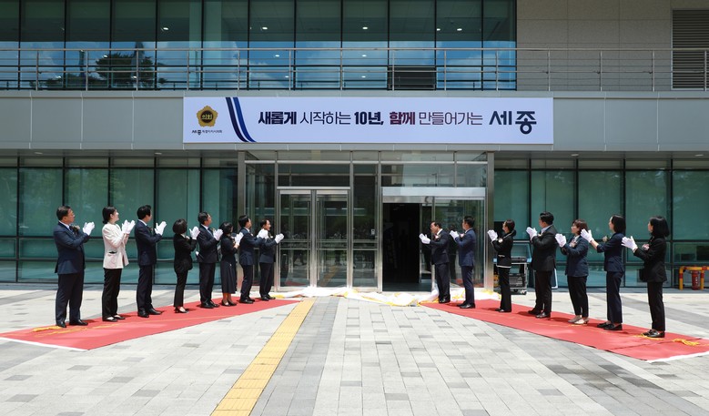 개원식 종료 직후 제4대 의회 기념식수와 전반기 의정 목표를 담은 슬로건 ‘새롭게 시작하는 10년, 함께 만들어가는 세종’을 첫 공개하는 현판 제막식을 진행했다.