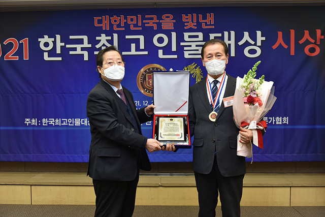 대한민국을 빛낸 ‘2021 한국최고인물대상’ 시상식에서 원준희회장이 주방기술경영부문 대상을 받았다.