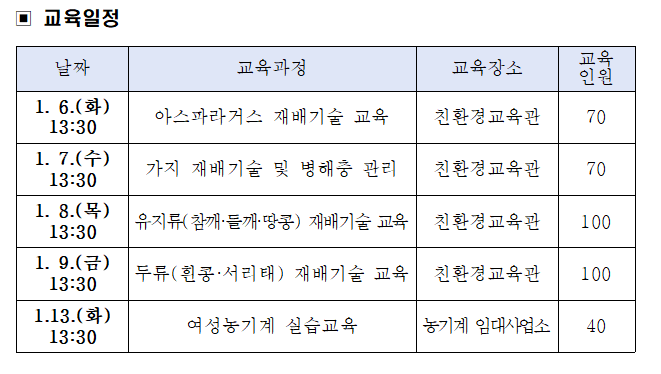 한편, 2026년 새해농업인실용교육은 지난해 12월 읍·면·동을별 벼농사 교육을 시작으로, 1월 밭작물분야 전문교육까지 단계적으로 운영되고 있다.