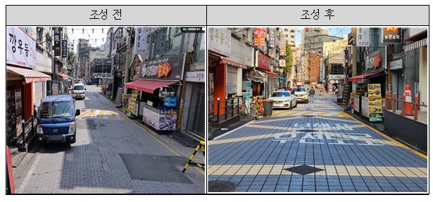 이어 ▲제한속도 하향(30km/h → 20km/h) ▲도로재포장 ▲보행친화포장 ▲안내표지판 설치 등을 주요 내용으로 조성 공사를 진행했다.