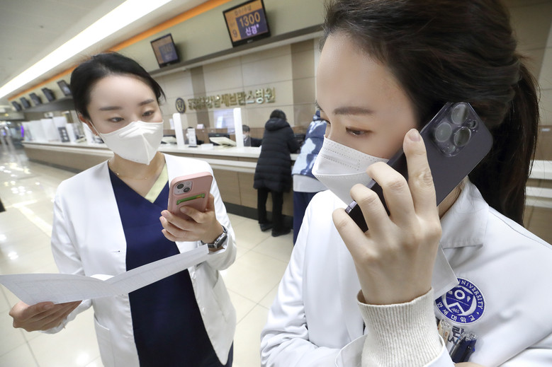 | ▲사진 : KT ‘엠디콜’ 서비스가 도입된 강남세브란스병원에서 스마트폰을 통해 업무 연락을 하는 모습 |