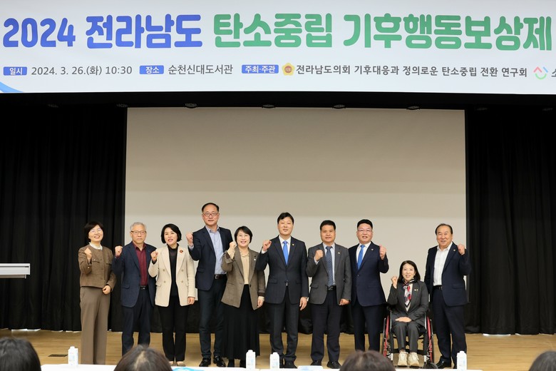 [전남 세계타임즈=우덕현 기자] 전라남도의회 서동욱 의장은 3월 26일 순천 신대도서관에서 열린 전남지역 탄소중립 기후행동보상제 포럼에 참석해 “전라남도의회에서는 탄소중립 실천이 일상 속 행동으로 정착할 수 있도록 관심과 지원을 아끼지 않겠다”고 밝혔다.