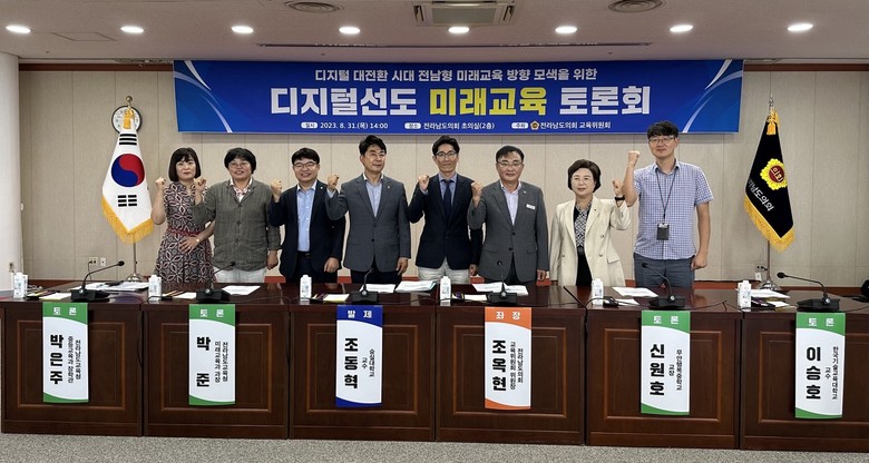 [전남 세계타임즈=우덕현 기자] 전라남도의회 교육위원회 조옥현 위원장(더불어민주당, 목포2)은 8월 31일(목) 오후 2시 도의회 초의실에서 ‘디지털 대전환 시대 전남형 미래교육의 방향’이라는 주제로 토론회를 개최했다.