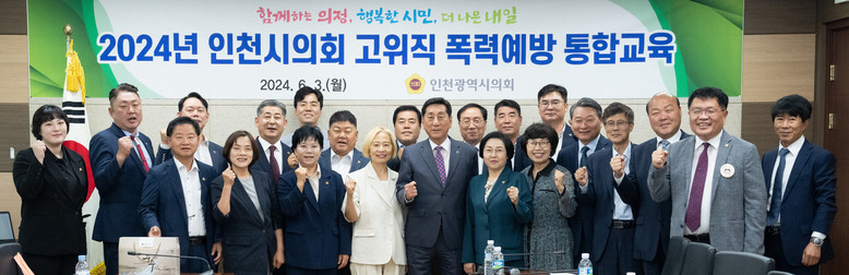 [인천 세계타임즈=송민수 기자] 인천광역시의회(의장 이봉락)는 3일 의원총회의실에서 시의원을 비롯해 사무처장 등 의회사무처 고위직 등을 대상으로 ‘폭력(성희롱·성폭력) 예방 교육’을 실시했다.