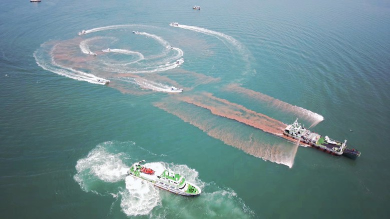 또 해경 방제선 소화포 분사, 어선 수류방제 등 적조 유입이 예상되는 해역에 합동 방제 활동이 이뤄졌다.