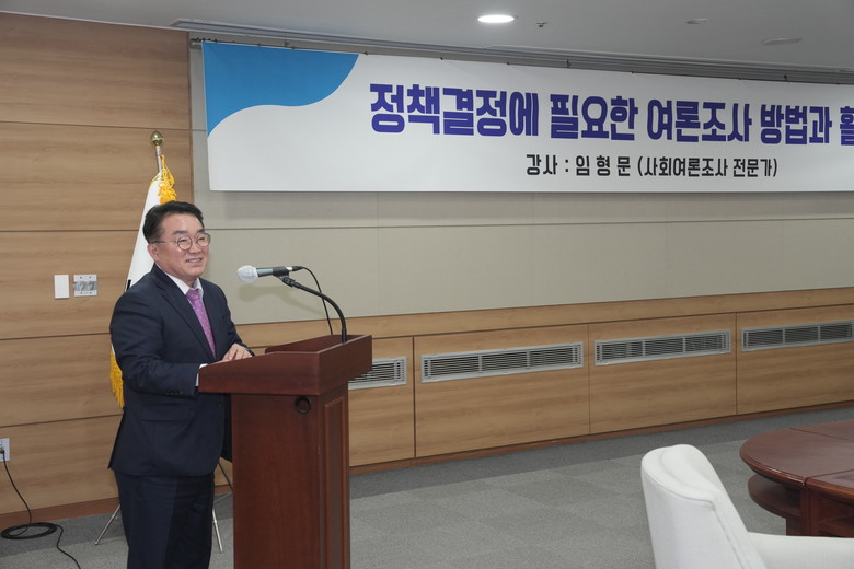 강사로 나선 임형문 ㈜폴인사이트 대표는 “정책결정에 필요한 여론조사 방법과 활용”을 주제로 여론조사의 개념과 필요성, 기법 및 사후활용 방안 등을 사례 중심으로 강연했다.