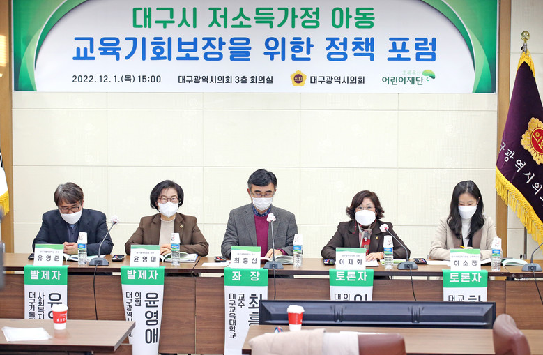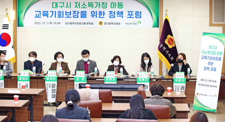 이번 포럼은 대구지역 저소득가정 아동의 교육격차 실태를 파악하고 실질적인 교육기회 보장을 위한 방안 마련을 위해 준비되었다. 대구시의회 윤영애 의원의 ‘대구 지역별 교육격차에 따른 지역불균형 해소방안’ 주제 발표 후, 유영준 대구가톨릭대 사회복지학과 교수와 신소희 아시아교육협회 대표의 주제 발표가 이어질 예정이다.