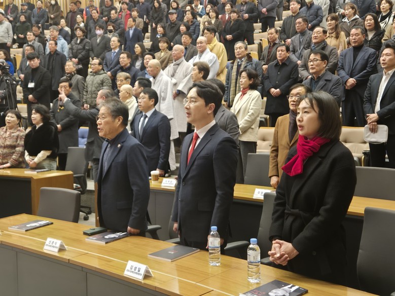 여기에 이철우 경상북도지사와 이강덕 전 포항시장이 영상으로 뜨거운 축하를 보냈고, 포항시 남구·울릉군의 이상휘 국회의원은 축전을 통해 김 전 의원의 새로운 행보에 힘을 보탰다. 지역의 정신적·사회적 지주들도 한자리에 모였다. 이대공 애린복지재단 이사장을 비롯해 박성근 오천교회담임목사, 포항시불교사암연합회 회장인 덕화스님(문수사), 부회장인 탄원스님(보경사), 성주스님(오어사) 등 종교계 지도자들이 참석해 김 전 의원의 비전에 공감을 표했다.