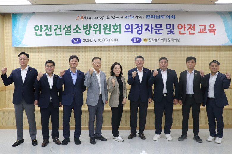 [전남 세계타임즈=우덕현 기자] 전남도의회 안전건설소방위원회(위원장 최명수)는 지난 7월 16일 전남도의회 중회의실에서 안전건설소방분야 현장 사례중심 교육을 통한 의정활동 역량강화를 도모하기 위해 의정자문회의를 개최했다.