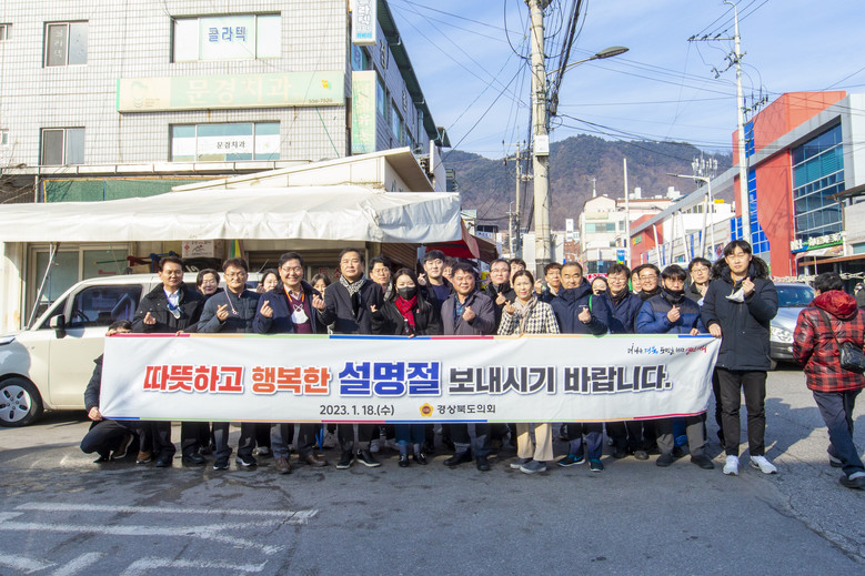 [경북 세계타임즈=한성국 기자] 경상북도의회(의장 배한철)는 18일 민족 최대 명절인 설날을 앞두고 박영서 부의장, 김창기, 김경숙, 박규탁, 정경민 의원을 비롯한 의회사무처 직원 30여명이 참여한 가운데 문경시 점촌전통시장(신흥시장, 흥덕동)을 방문해 장보기 행사 및 전통시장 이용 캠페인을 가졌다.