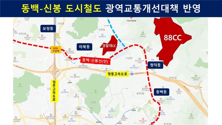아울러, 김 의원은 “과거 LH가 광역교통개선대책 수립 없이 구성지구 및 옛 경찰대 부지를 개발하면서 20여 년간 구성동·마북동·동백동 주민들이 교통 불편을 겪어왔다”며, “옛 경찰대 골프장과 88CC를 도심 주택공급 확대 사업으로 검토할 경우, 정부는 반드시 광역교통개선대책을 우선 수립해 신규 도로망 구축과 교통환경 개선을 추진해야 한다”고 강조했다.