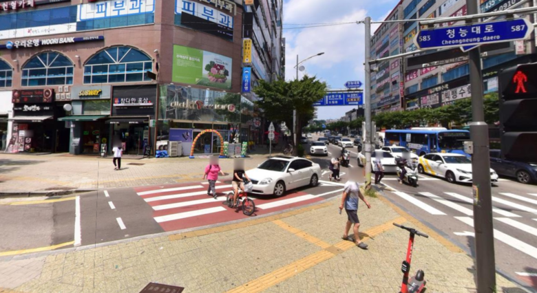 청능로사거리는 논현동 상권 중심지에 있는 교통 혼잡 지역으로, 기존 교통섬은 우회전 차량의 ‘일단 멈춤’이 잘 지켜지지 않아 보행 안전 문제가 제기돼 왔다.