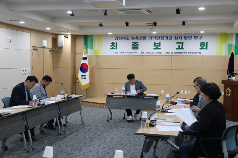 [경북 세계타임즈=한윤석 기자] 경북도의회 「농축산물 가격안정화 방안연구회」(대표 박창욱 의원)는 9월 23일(월) 도의회 다목적실에서 “경상북도 농축산물 가격안정기금 설치 방안 연구 용역” 최종보고회를 개최했다.