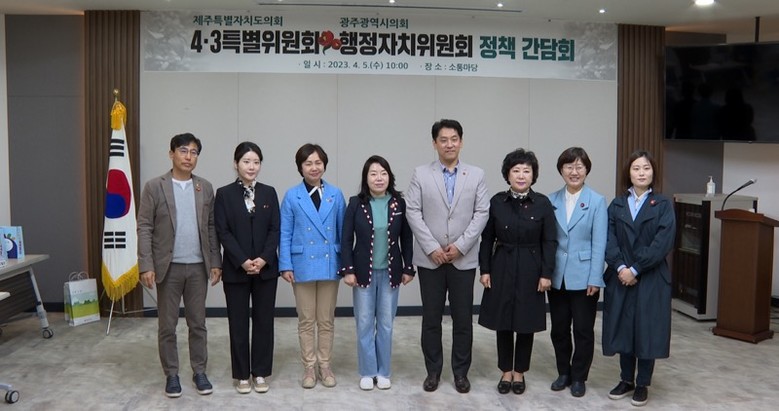 - 광주 5.18민주화 운동, 제주 4.3항쟁 상호협력 확대 [광주 세계타임즈=손권일 기자] 광주광역시의회 행정자치위원회(위원장 임미란)는 지난 3일부터 5일까지, 2박 3일 동안 제주 4.3평화재단 기념사업팀, 4.3 중앙위원회 김종민 전문위원, 제주특별자치도의회 4.3특별위원회를 만나 간담회를 진행하였다.