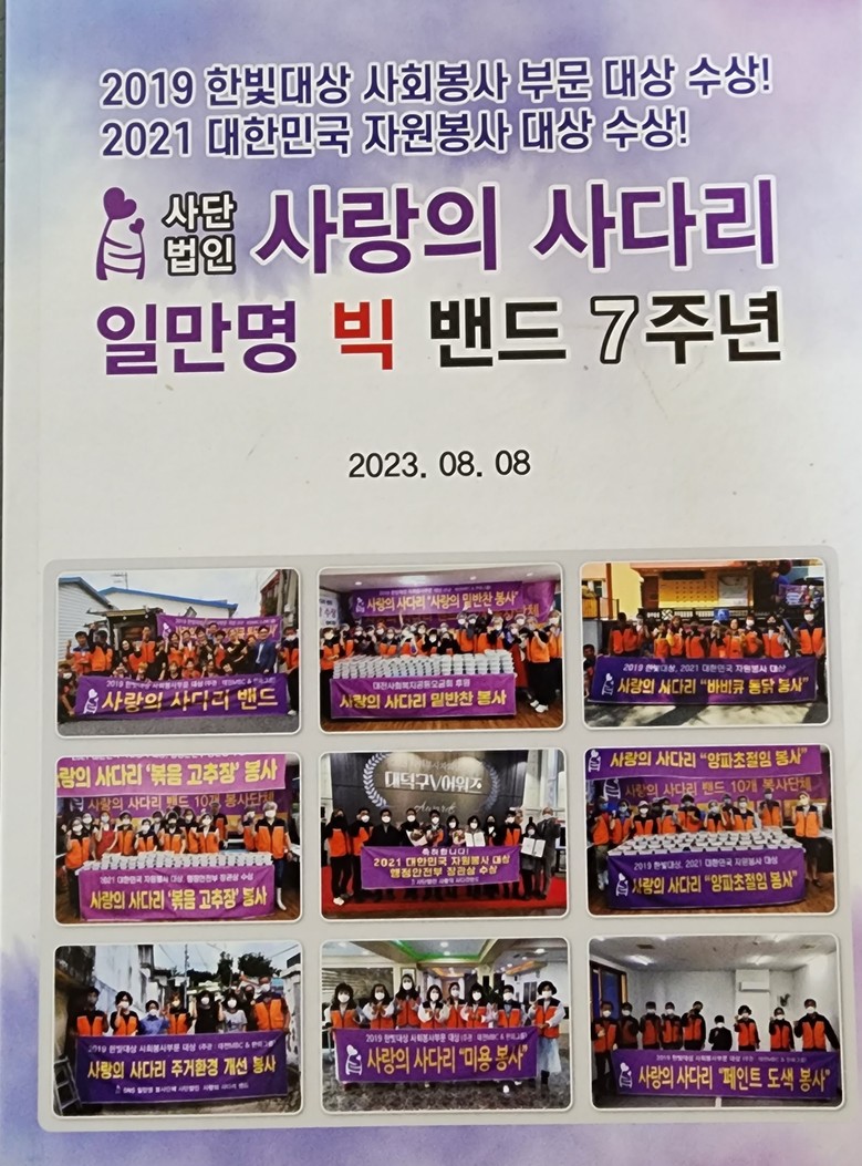 이날 7주년 기념행사는 조촐한 기념식과 함께 자원봉사자 시상식을 가졌다.2023년 사랑의 사다리 밴드 자원봉사 수상자는 대상 유희자 단장, 최우수상 강은정, 김호찬, 김호현 이외에도 공로상, 후원상, 장려상, 우수상, 신인상 등 45명의 자원봉사자 시상을 하였다.