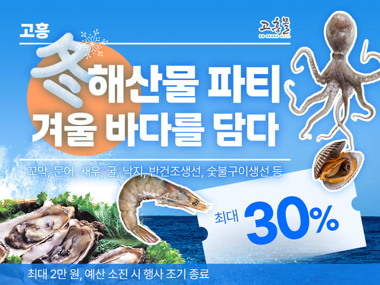 [고흥군 세계타임즈=우덕현 기자] 고흥군(군수 공영민)이 운영하는 온라인 농수축특산물 쇼핑몰 ‘고흥몰’은 본격적인 겨울철을 맞아 12월 2일부터 9일까지 ‘고흥 동(冬)해산물 파티–겨울 바다를 담다’ 기획전을 진행한다고 밝혔다.
