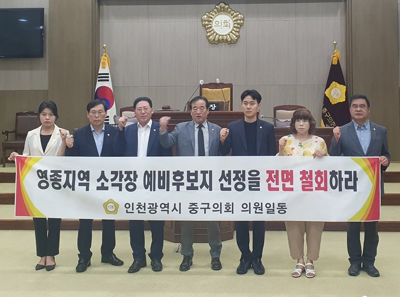 그러나 예비후보지 5곳이 모두 영종으로 밝혀지면서 특정 지역에 편중된 것을 주민들은 받아들이기 어렵다는 입장이며 주민과 시의 갈등 또한 고조되고 있는 상황에서 주민의 입장을 대변하기 위하여 중구의회가 적극 나선 것이다.