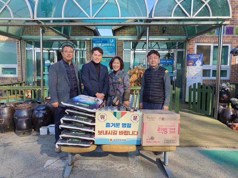 [경북 세계타임즈=한성국 기자] 경상북도의회는 설명절을 맞아 경북도의원 및 의회사무처 직원이 각 일정별로 관내 사회복지시설을 찾아 명절의 따뜻한 정을 나누고 있다. 19일은 경상북도의회를 대표해 윤종호 도의원이 구미시 산동읍에 소재하고 있는 ‘늘기쁨실버하우스’를 방문해 도의회에서 준비한 위문품을 전달하고 관계자들을 격려했다.