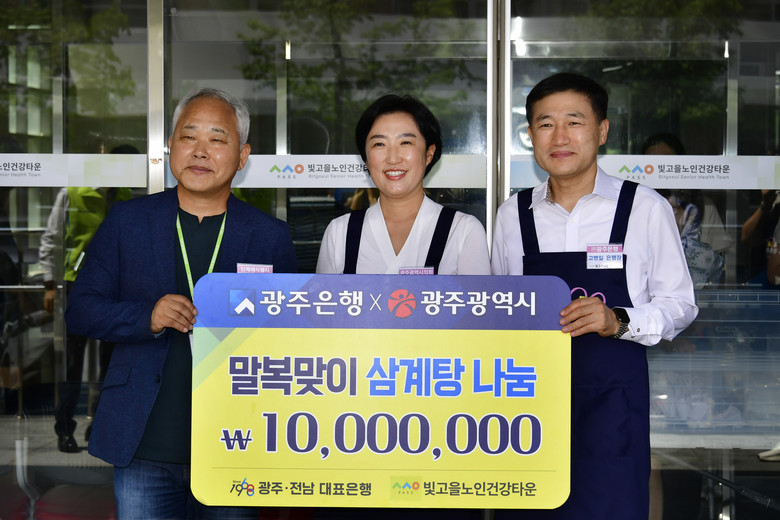 무더위가 연일 이어지는 가운데 광주시의회와 광주은행은 노인건강타운을 찾은 어르신들에게 삼계탕을 대접했다. 배식 후에는 떡, 음료수, 부채 등을 전달하며 어르신들의 건강한 여름나기를 응원했다.